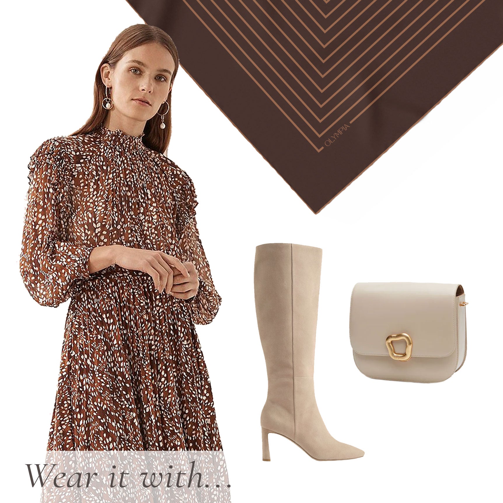 For those times when you need a scarf that's not too plain but not overly patterned either. This design works well with small prints from leopard to snakeskin and more. Another wardrobe staple to add to your collection!