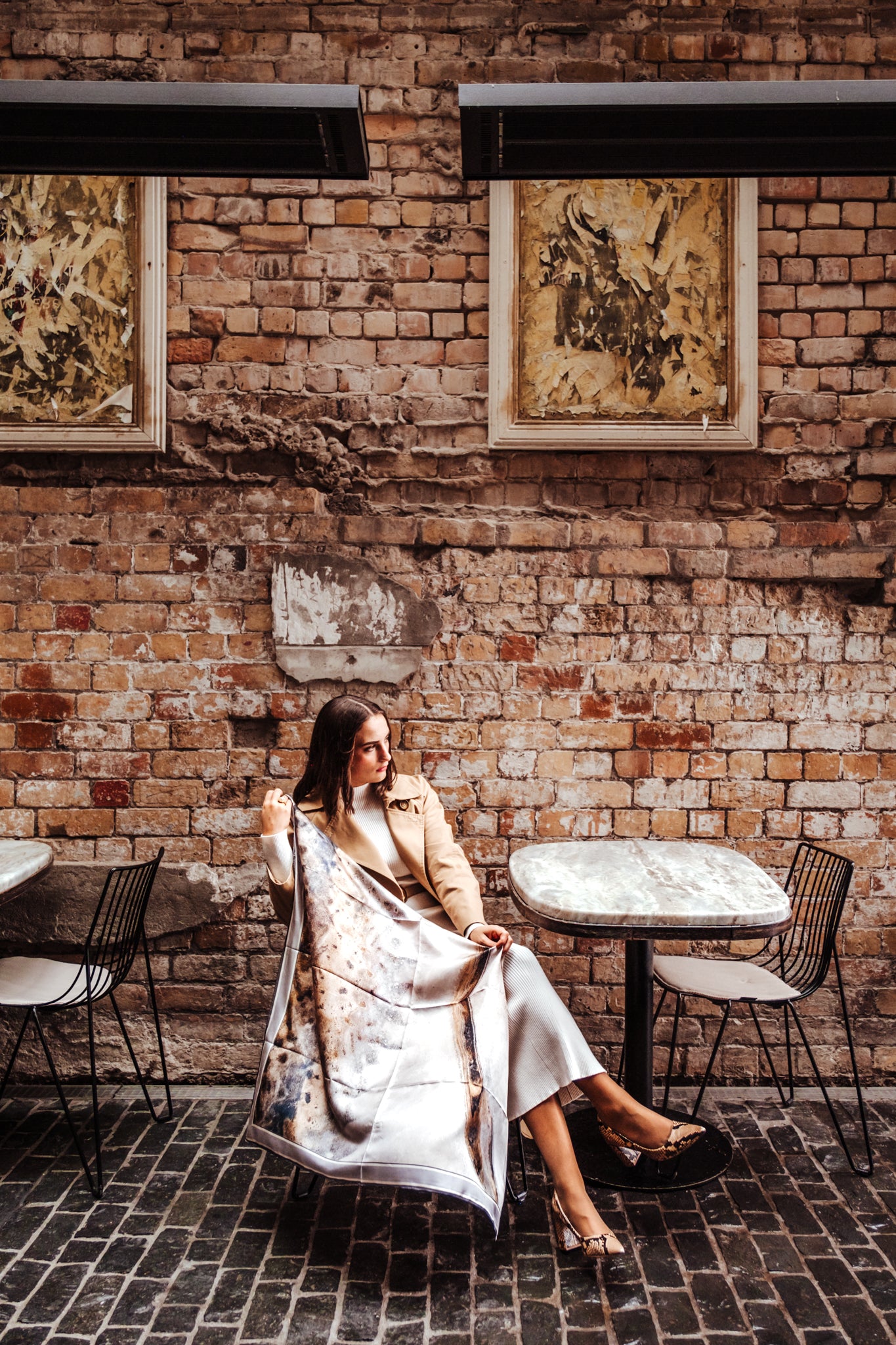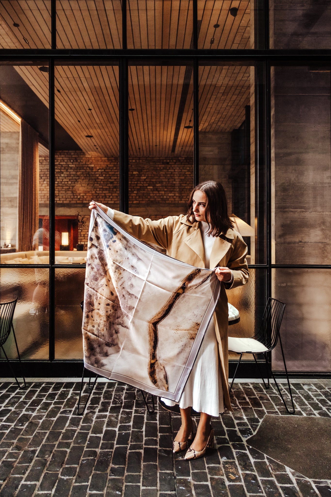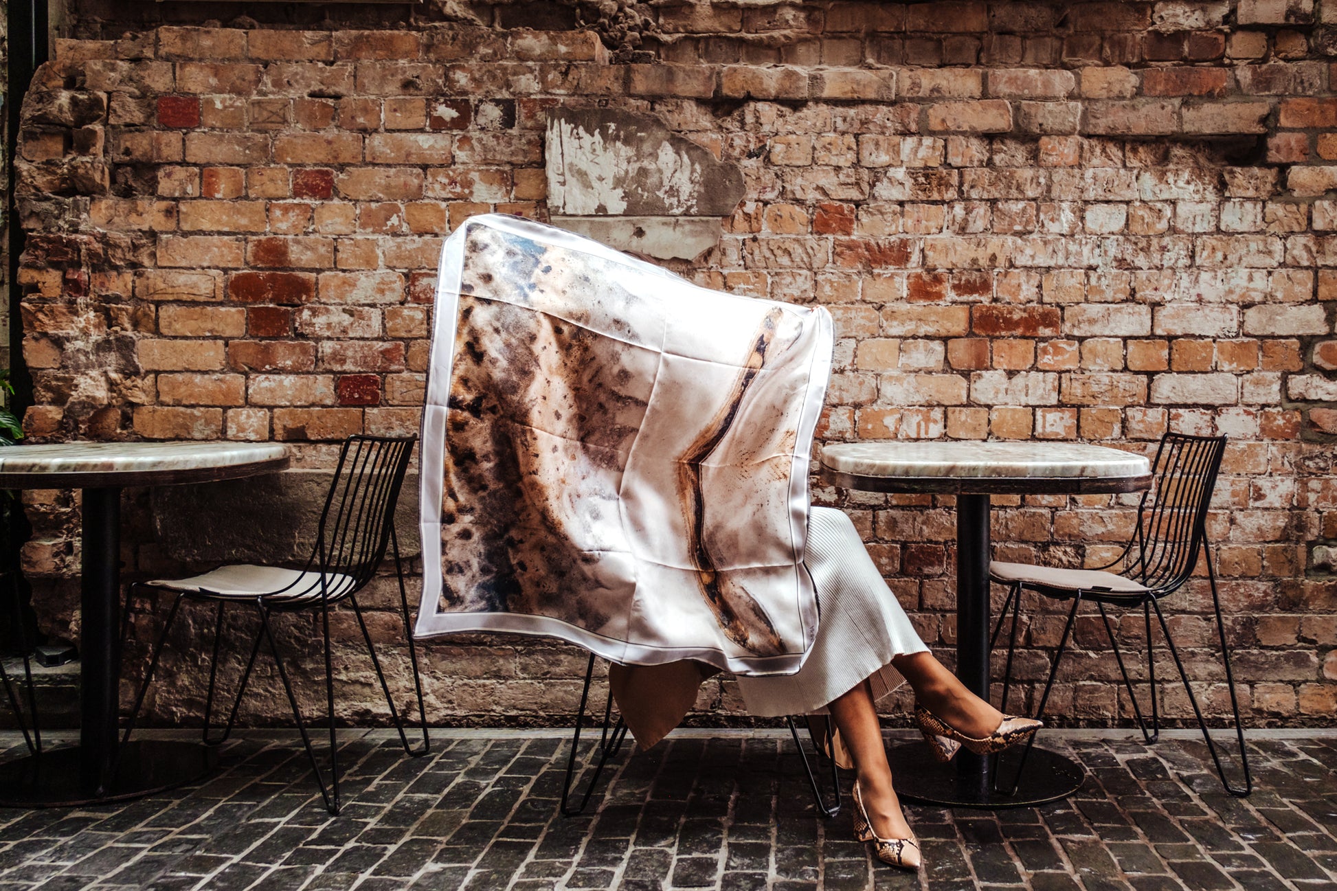 Please note: The flatlay images (scarf on plain white background) best represent the final scarf design and the most accurate colouring. It is important to note that the scarf used in our model shoot did not have the split-colour border.