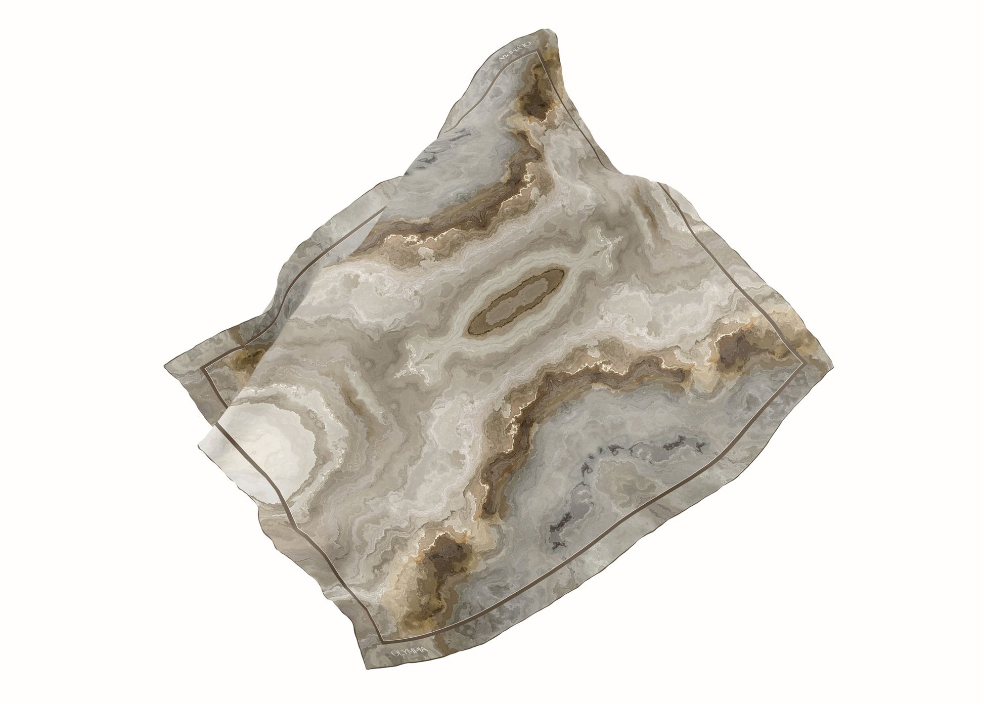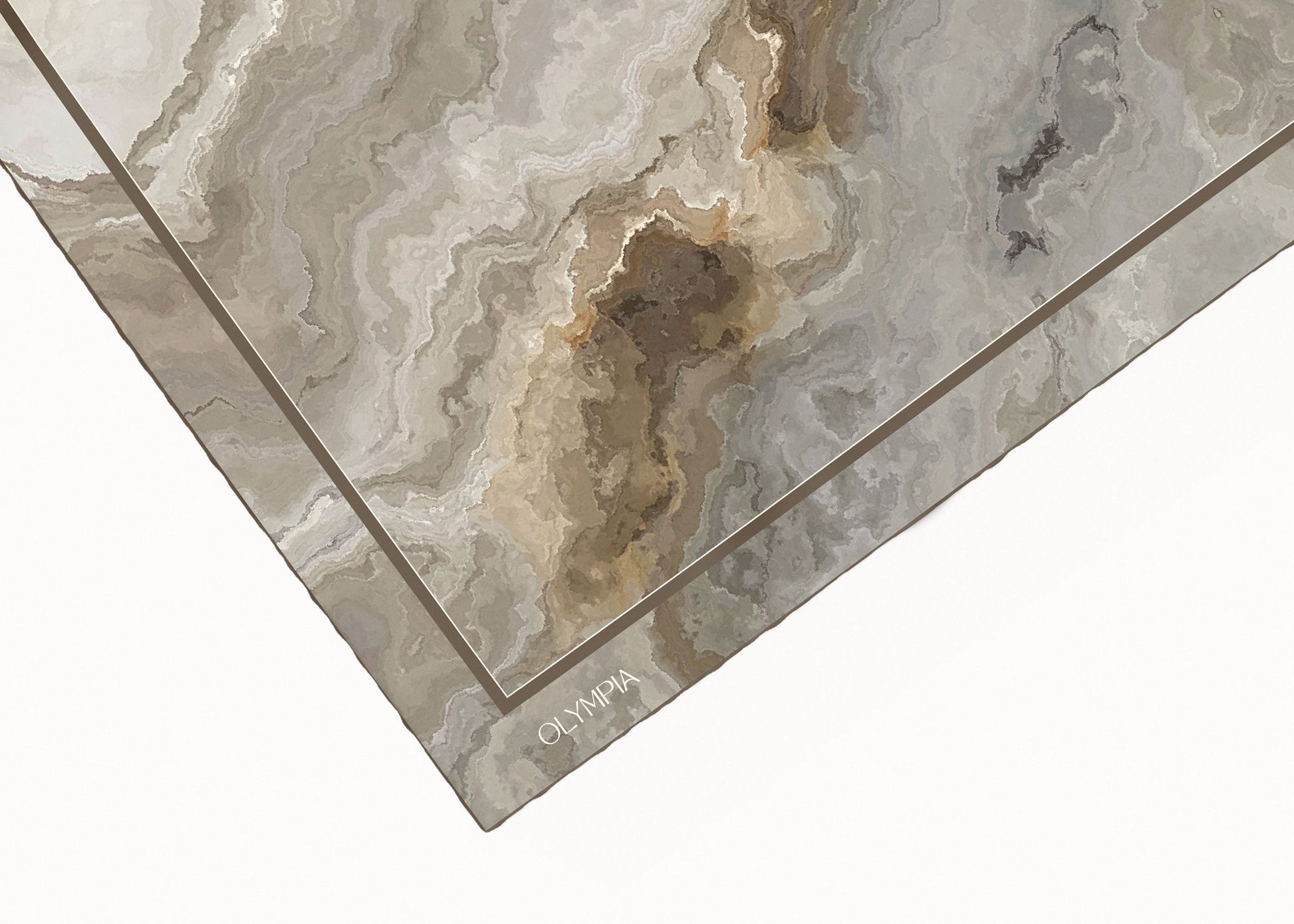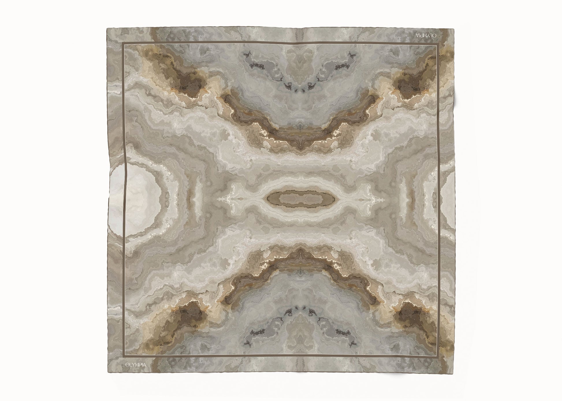 Introducing Cressida, a limited-edition silk scarf featuring a tessellated marble print framed by a gold border, featuring neutral colours ranging from white, cream and beige through to gold, grey and charcoal. Cressida is an elegant and timeless design that will be remain stylish for years to come.