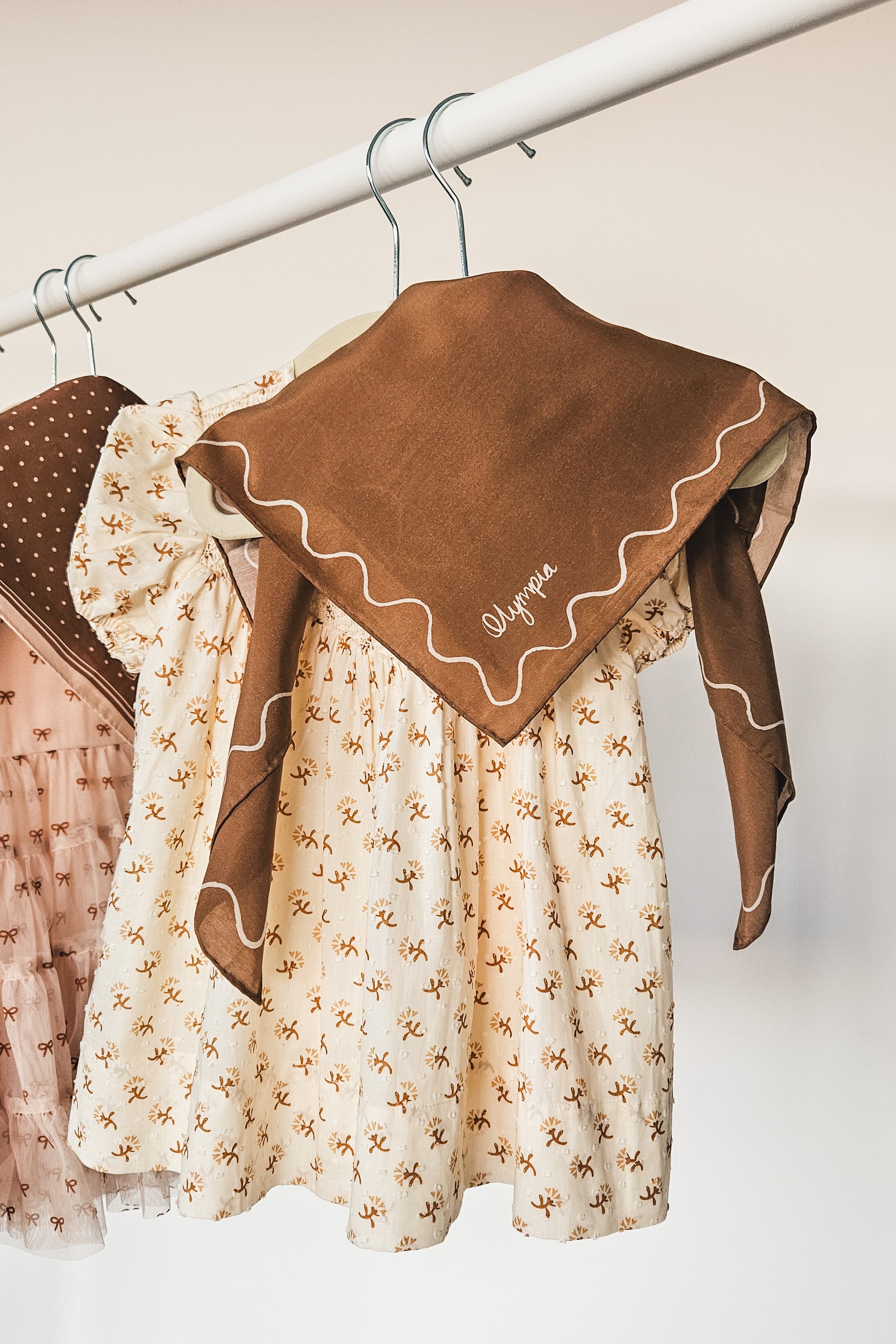 Introducing Emilia, our newest border-edge scarf design featuring a delicate hand-drawn wavy line border. As the lesser-known cousin of our ever-popular Sophie border, Emilia is your go-to choice for a more subtle and organic look. She pairs beautifully with sweet floral designs, making her perfect for little girls’ charming ensembles!