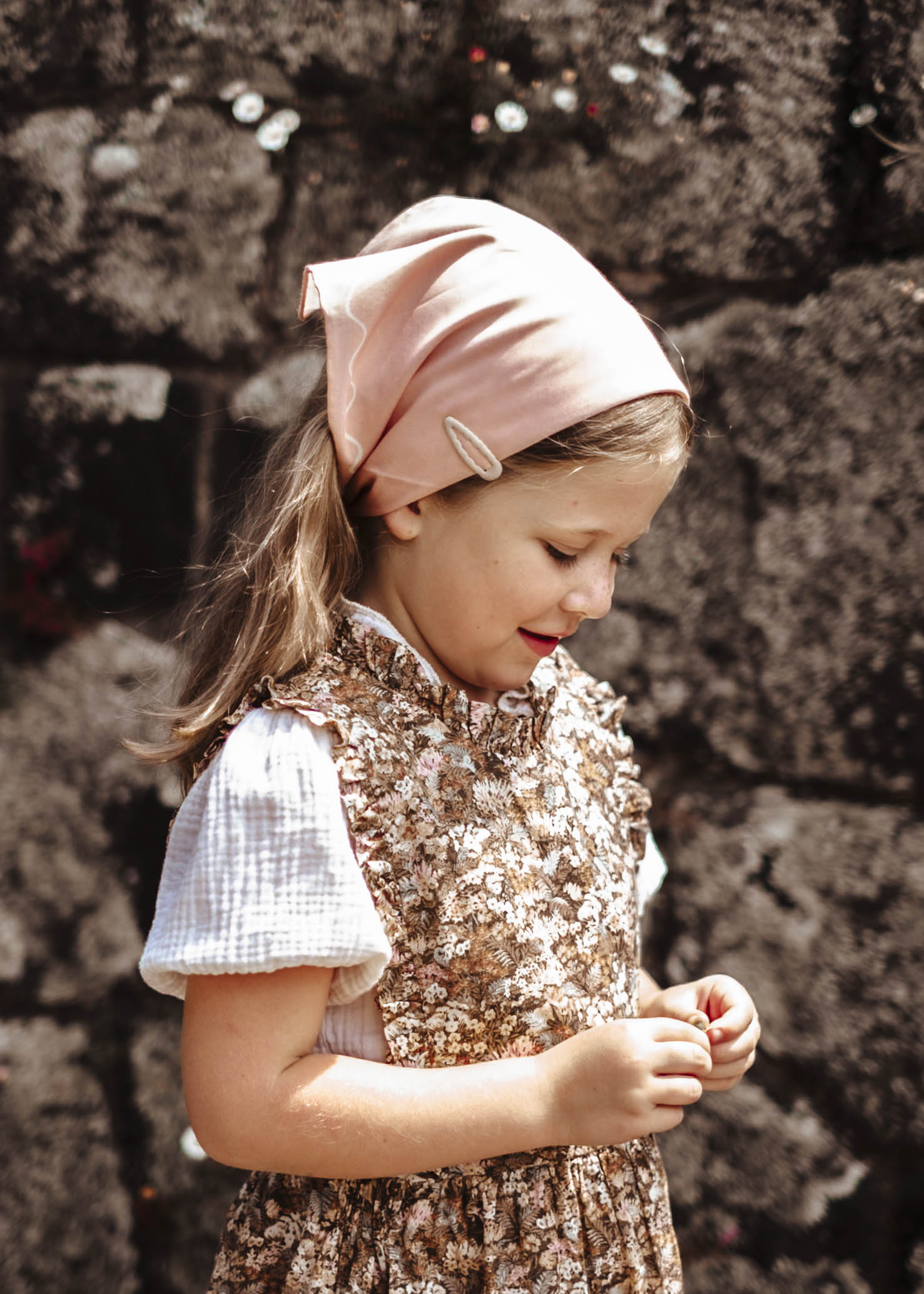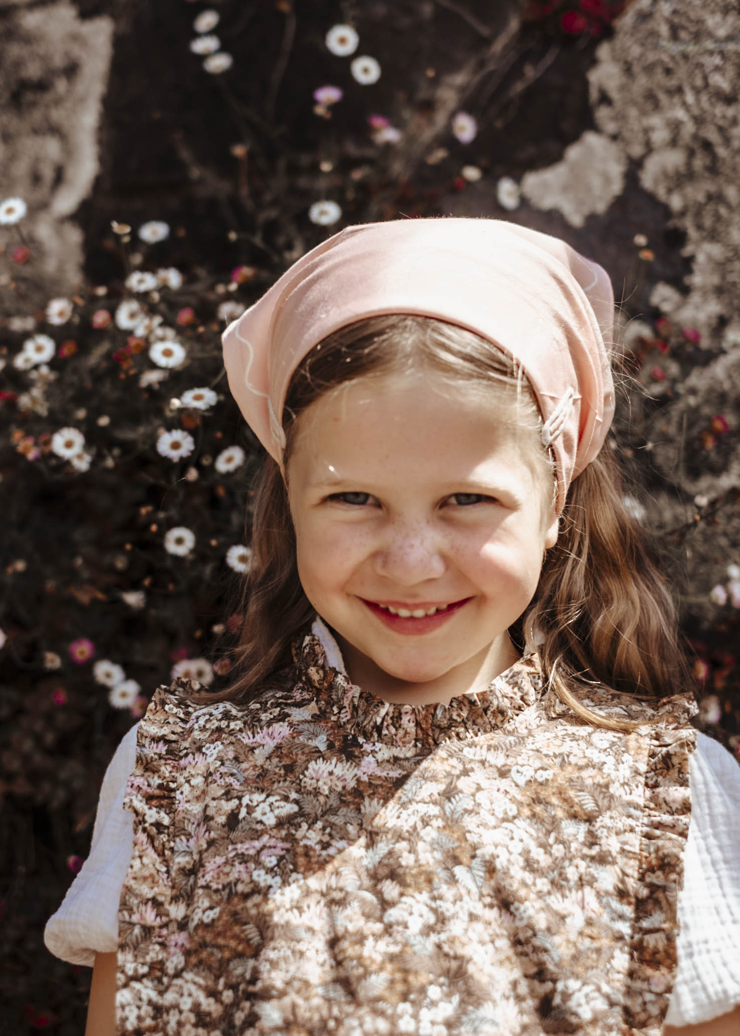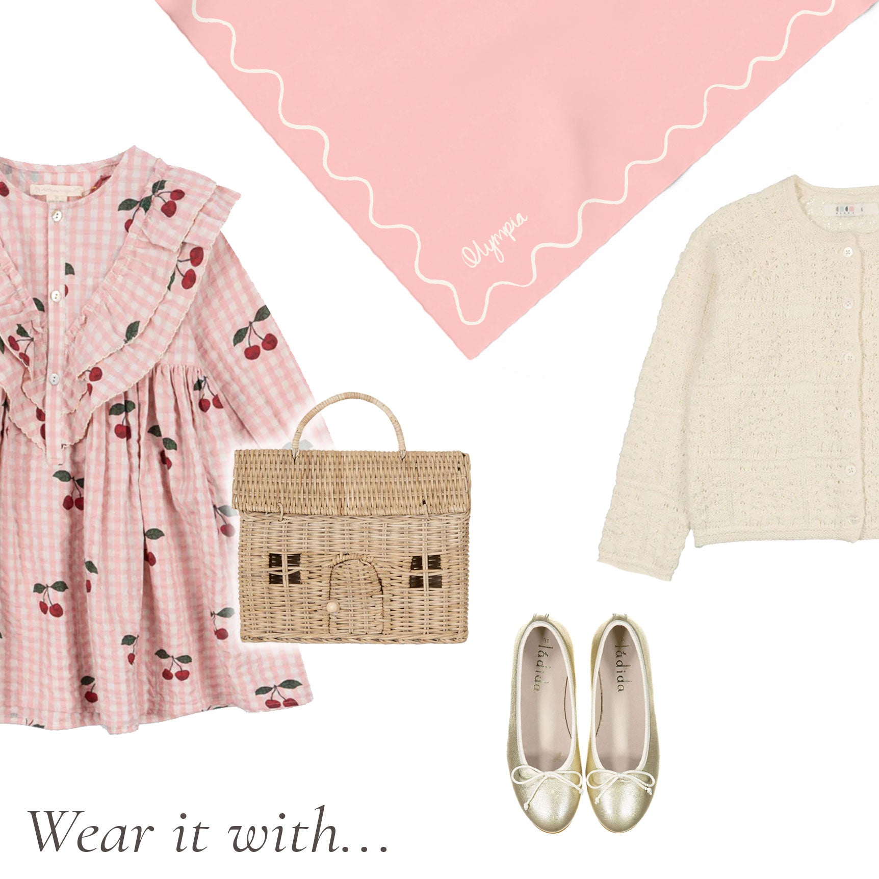 Introducing Emilia, our newest border-edge scarf design featuring a delicate hand-drawn wavy line border. As the lesser-known cousin of our ever-popular Sophie border, Emilia is your go-to choice for a more subtle and organic look. She pairs beautifully with sweet floral designs, making her perfect for little girls’ charming ensembles!