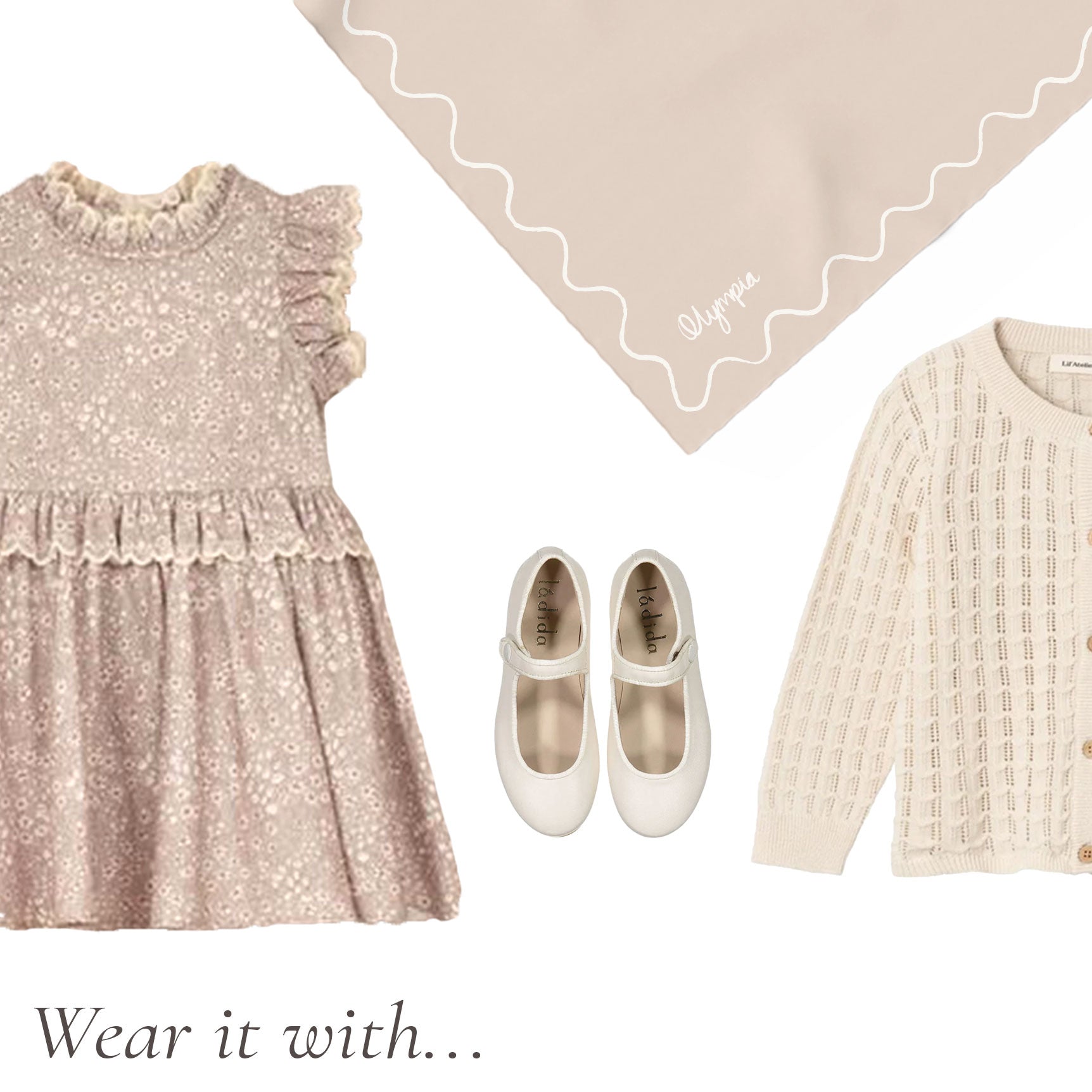Introducing Emilia, our newest border-edge scarf design featuring a delicate hand-drawn wavy line border. As the lesser-known cousin of our ever-popular Sophie border, Emilia is your go-to choice for a more subtle and organic look. She pairs beautifully with sweet floral designs, making her perfect for little girls’ charming ensembles!