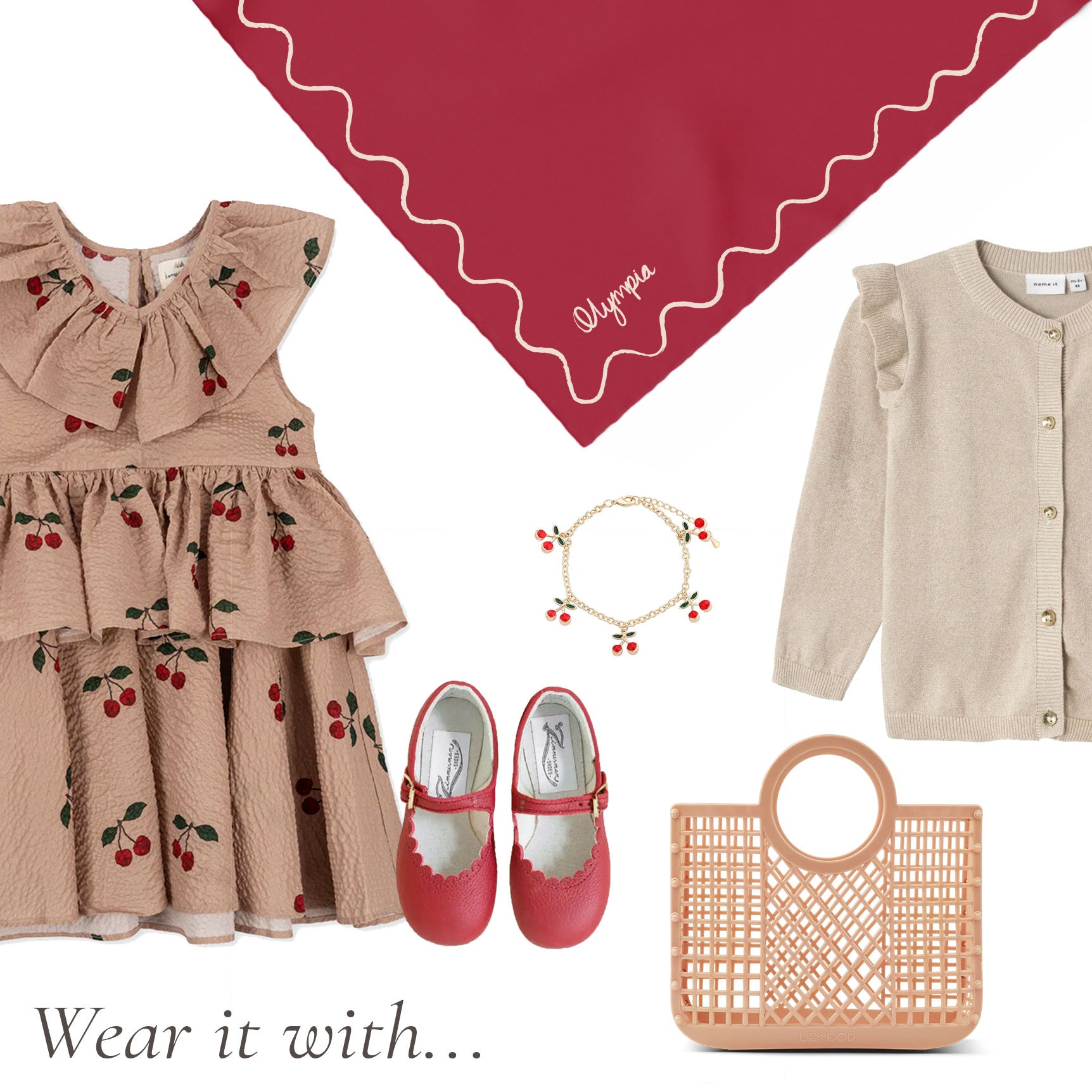 Emilia Velvet Cherry Scarf - 54x54cm Silk Cotton - Imperfect