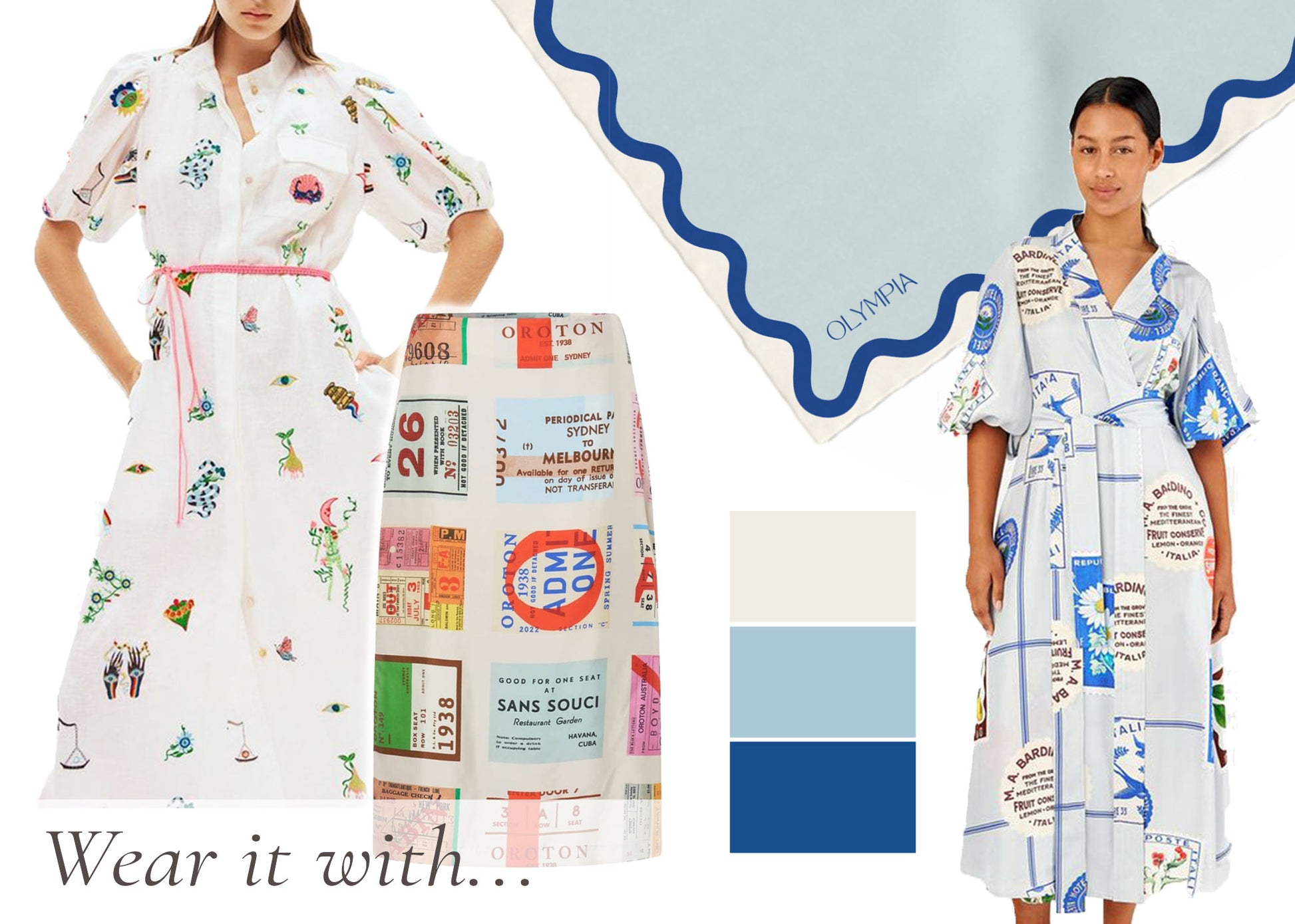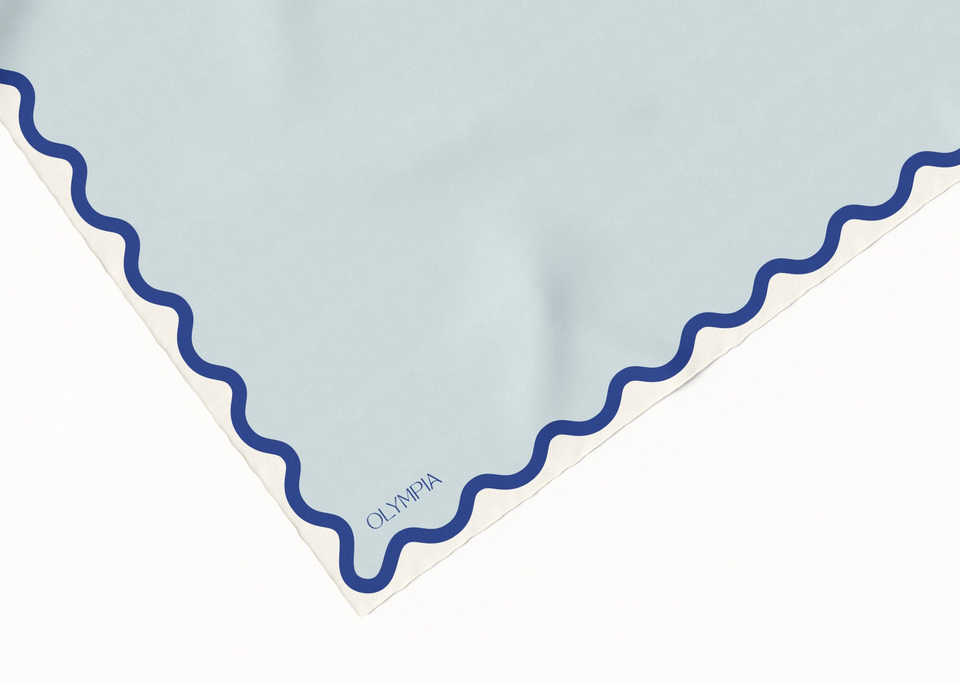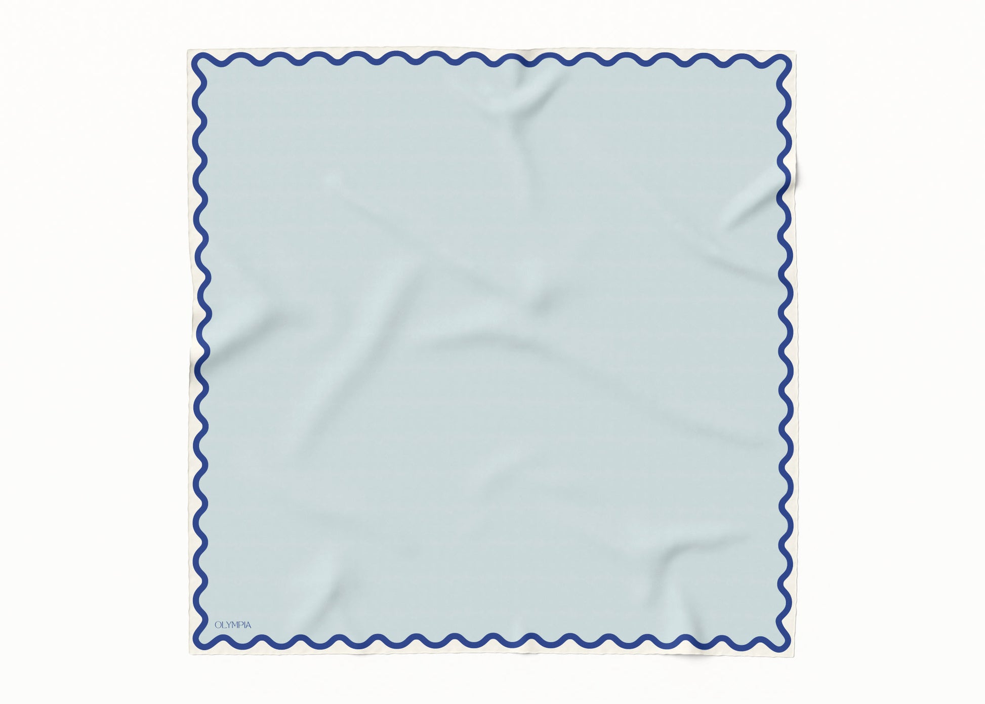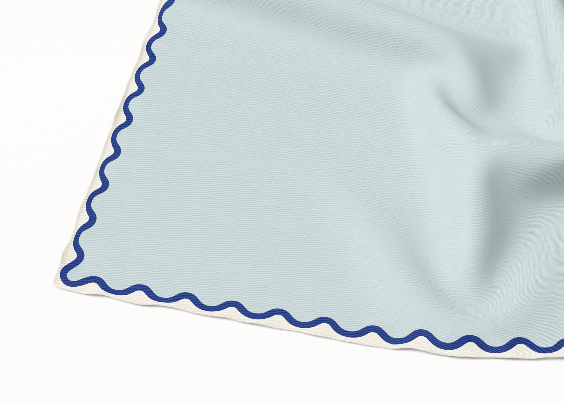 For those times when you need a plain scarf, but with a little something - Sophie's sister design Etta is another reliable option. This scarf features a soft pale blue background with a wide wavy border in ultramarine blue, outlined by a cream background