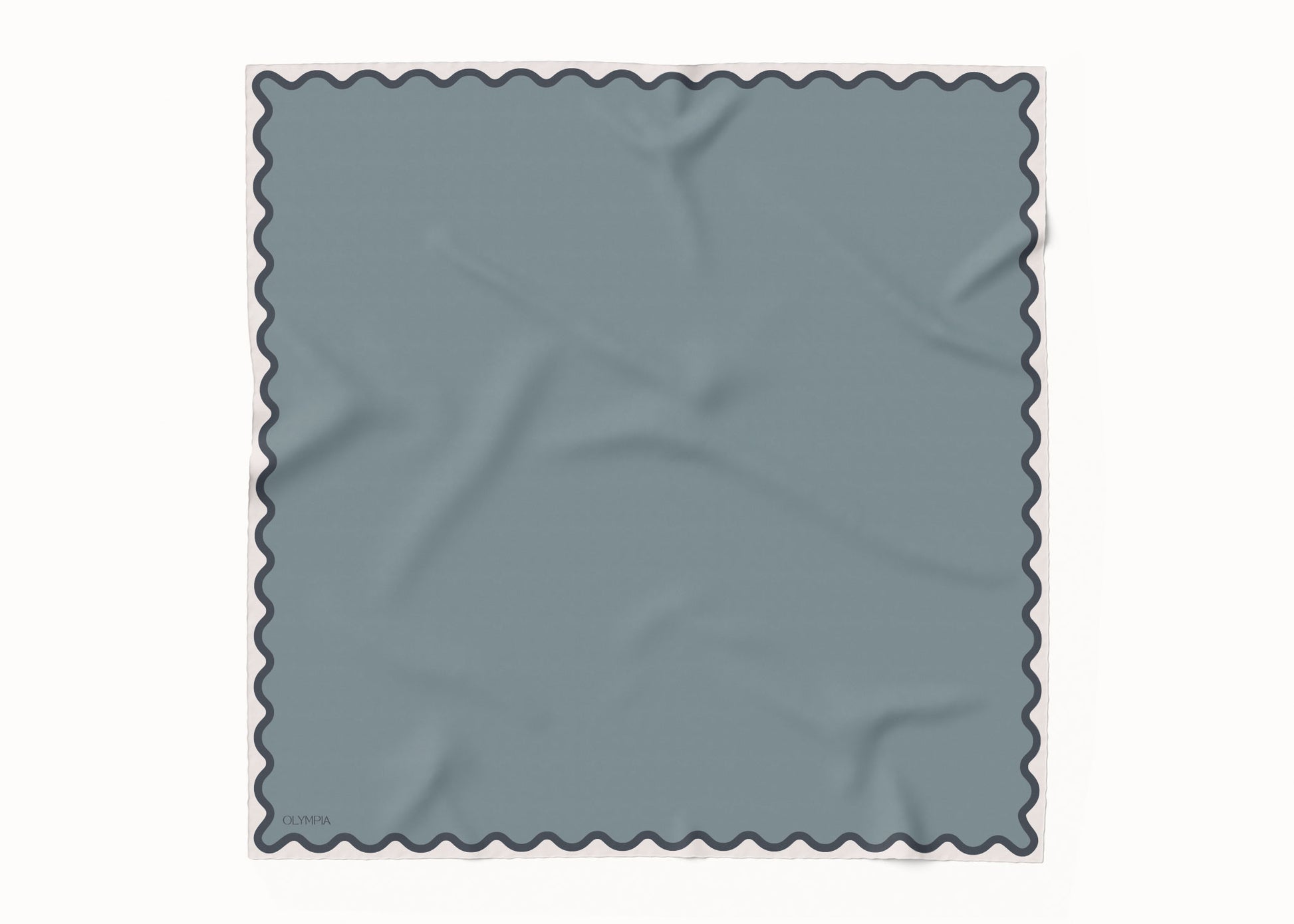 For those times when you need a plain scarf, but with a little something - Sophie's sister design Etta is another reliable option. This scarf features a sage-coloured background with a wide wavy border in dark grey, outlined by an off-white background