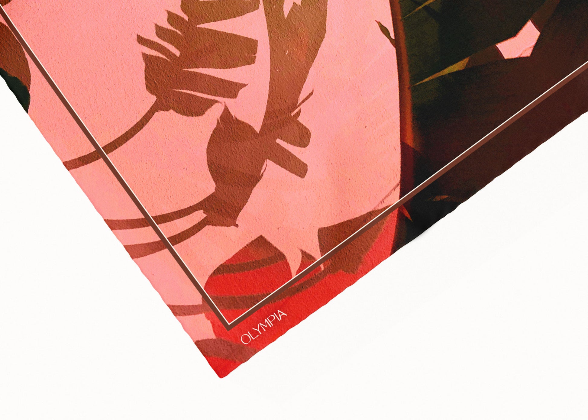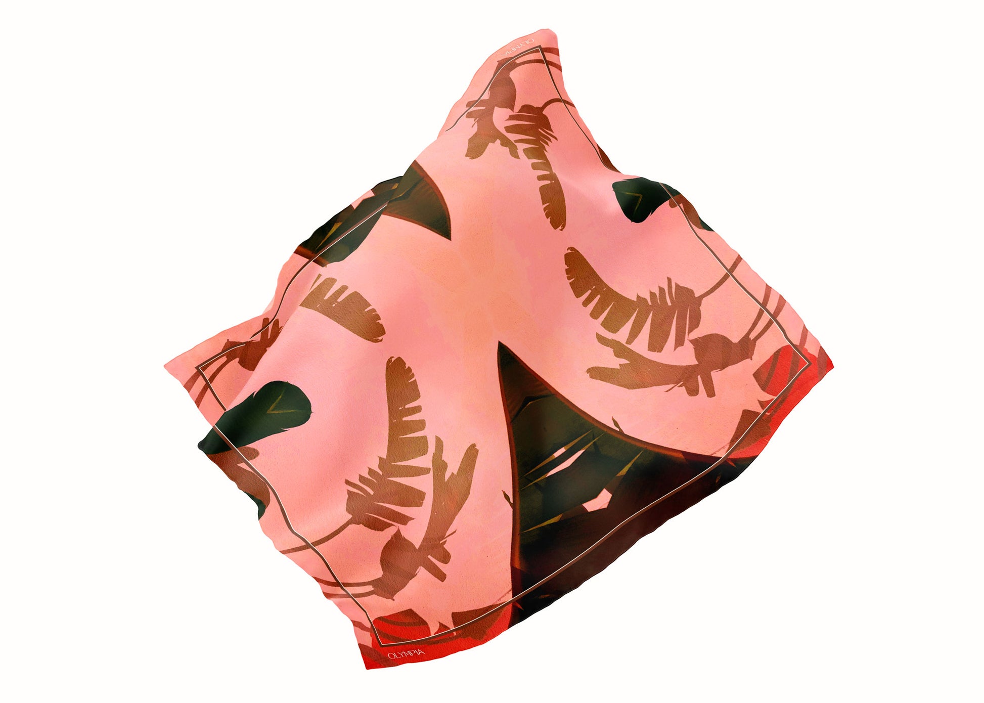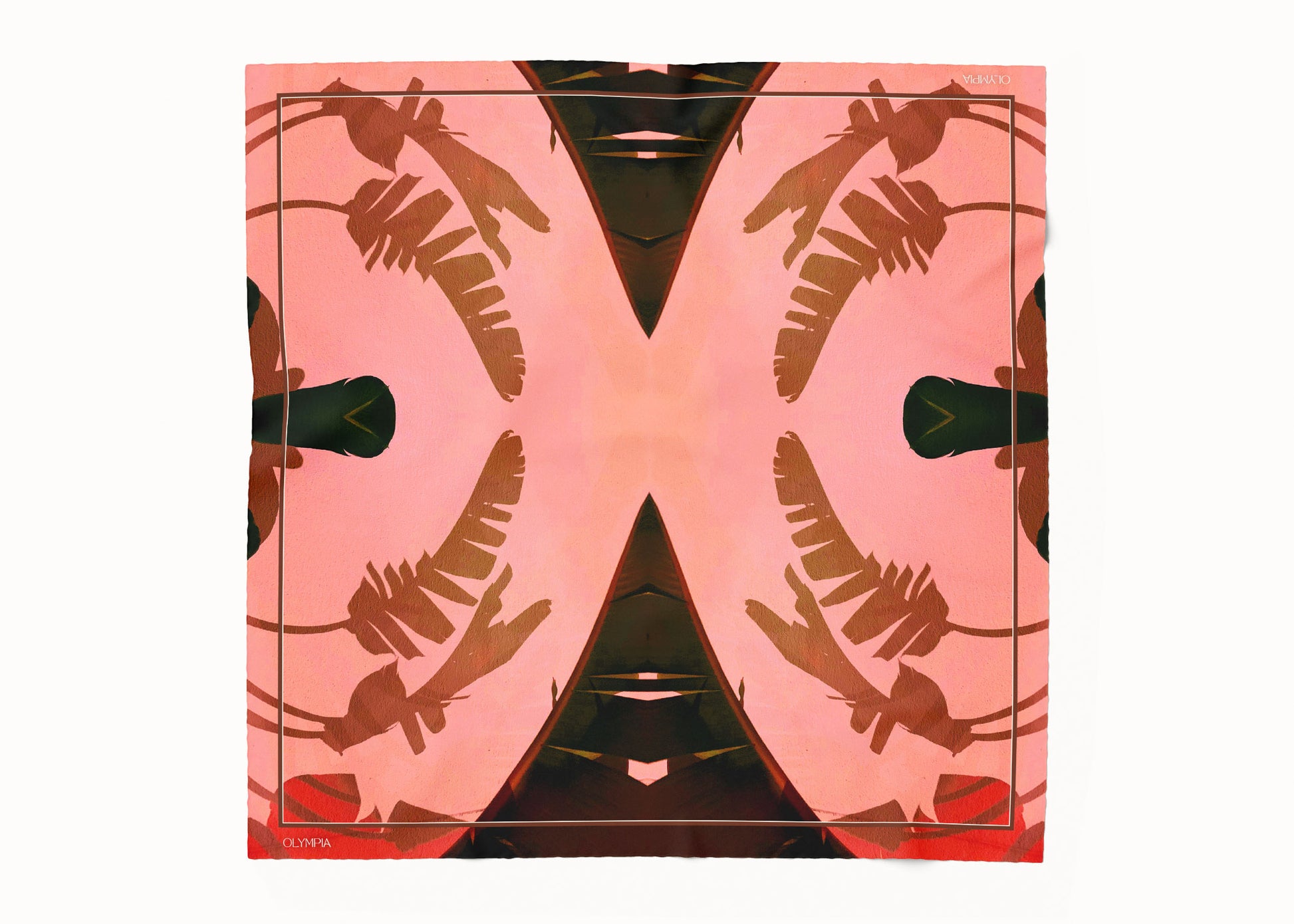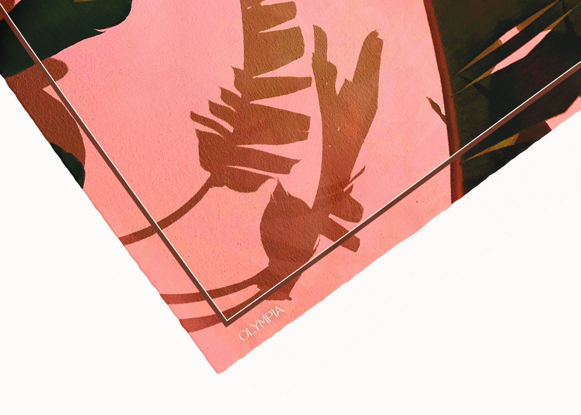 Introducing Frida 'Sunset Glow', a striking scarf featuring vibrant palm leaf shadows cast against a sunlit, textured wall. This colourway features colourful, high-contrast hues—from salmon, red and bronze, to tan, deep brown and black. Frida is the perfect accessory to elevate your summer style, injecting warmth and character into any outfit.