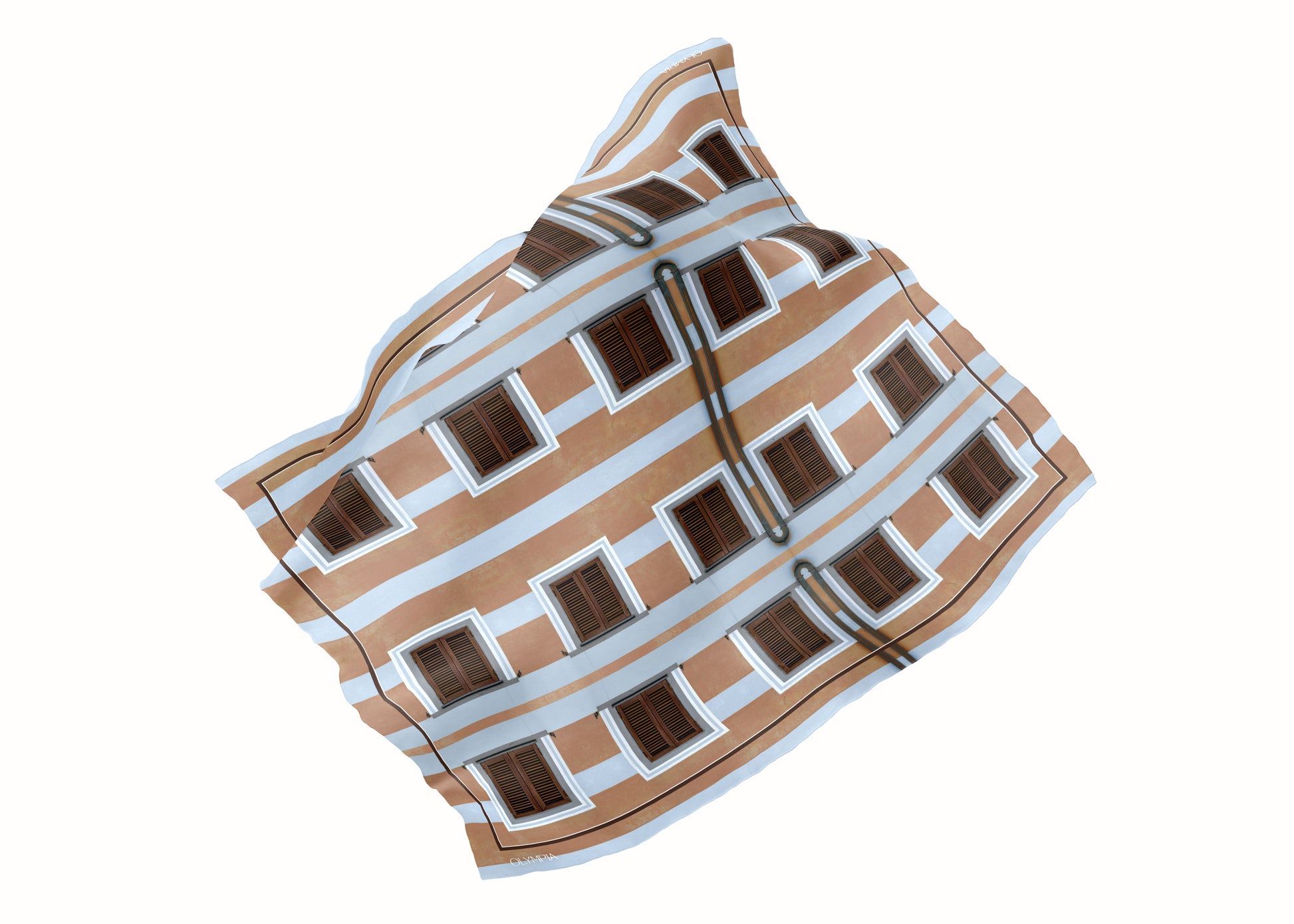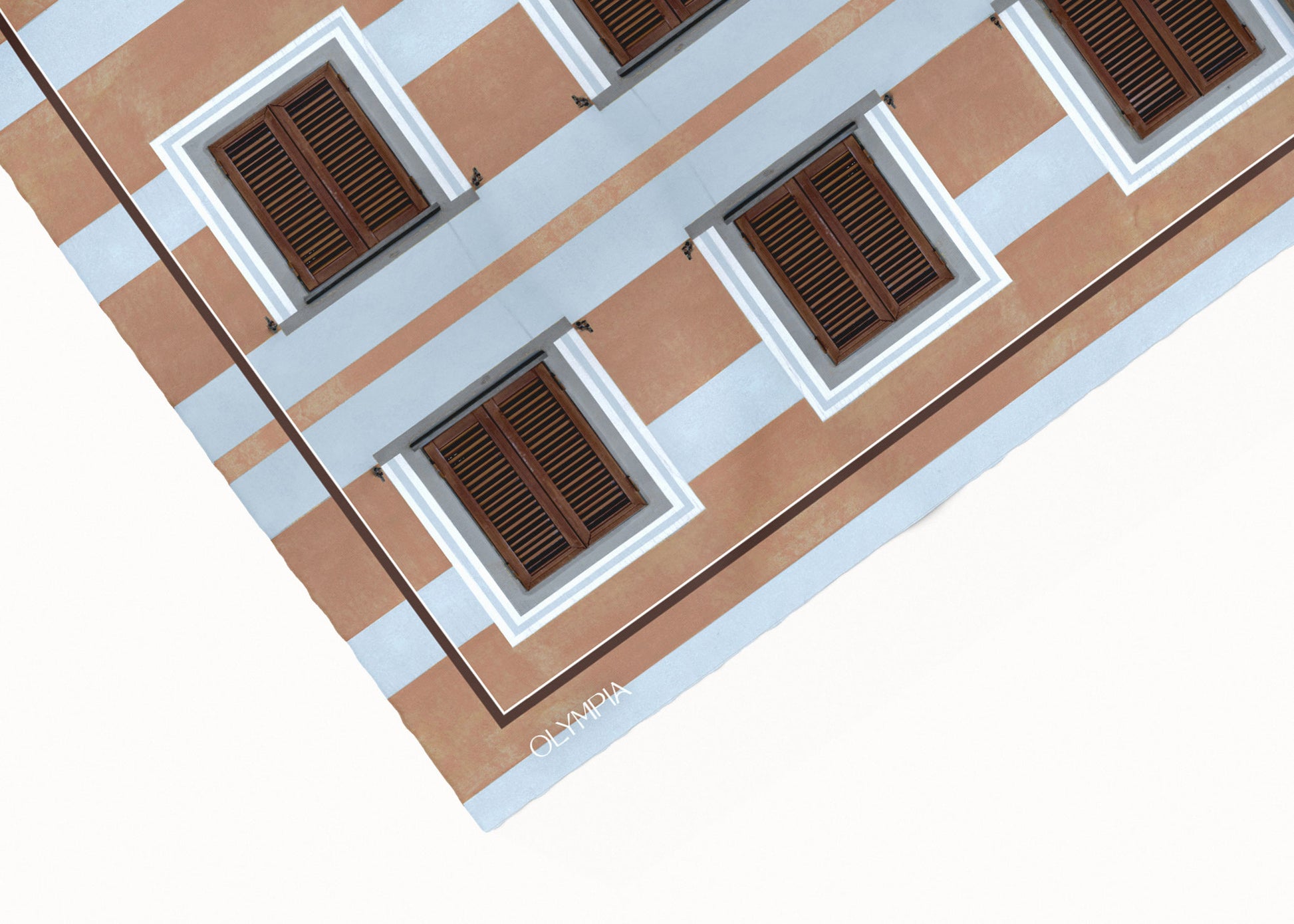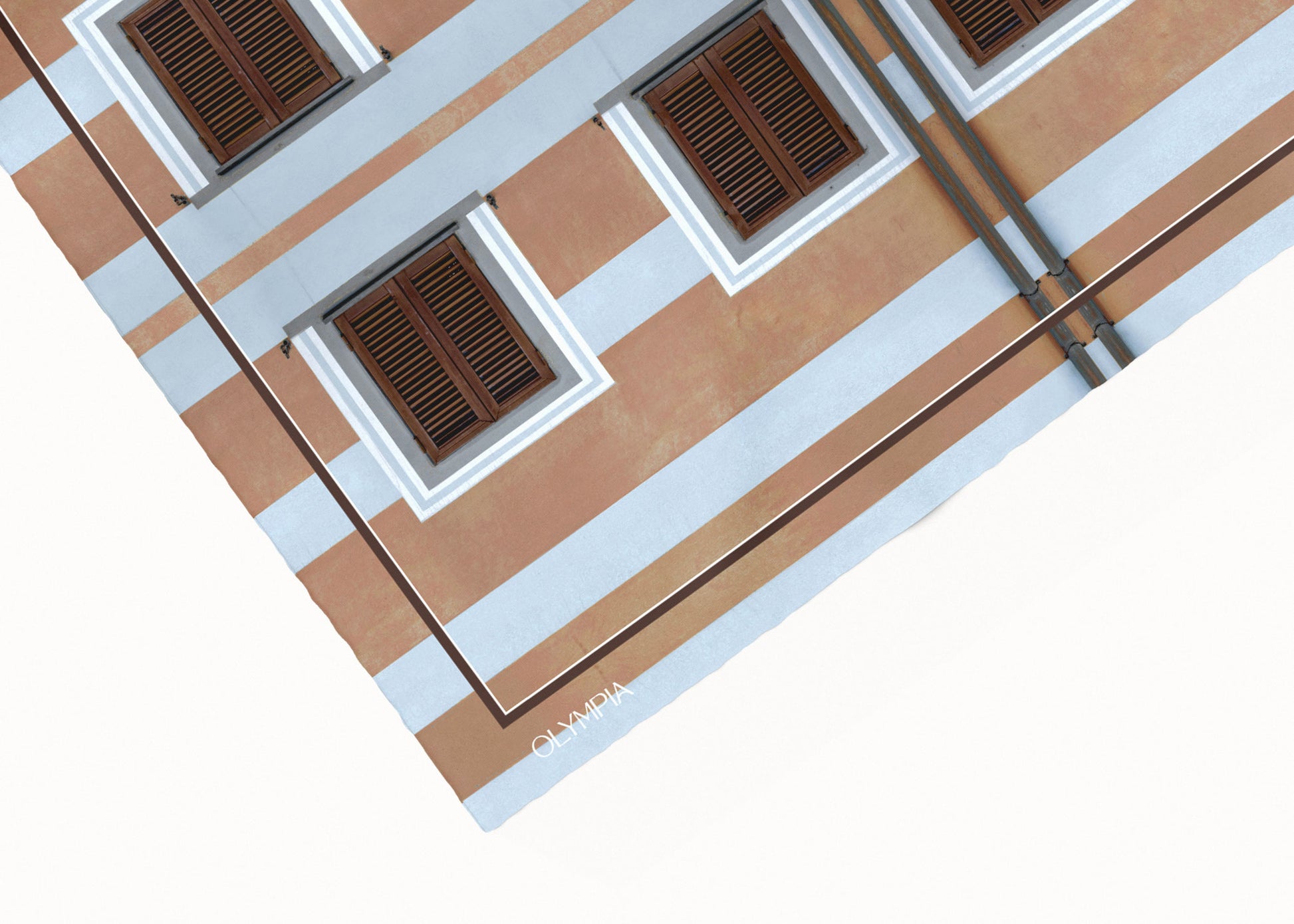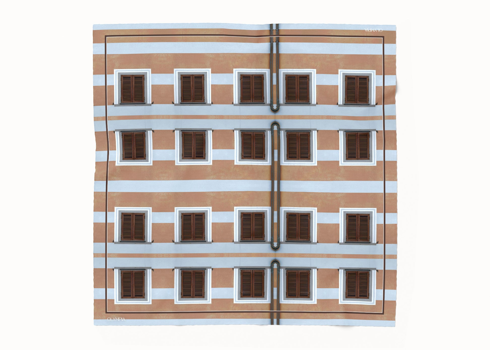 Introducing Gia - the perfect scarf to transport you to the sunny Italian coast! This design features tessellated imagery of a charming stucco facade, complete with colourful stripes and quaint wooden shutters. The house featured in the imagery is located in the heart of Manarola, a picturesque town perched on the cliffs of northern Italy.