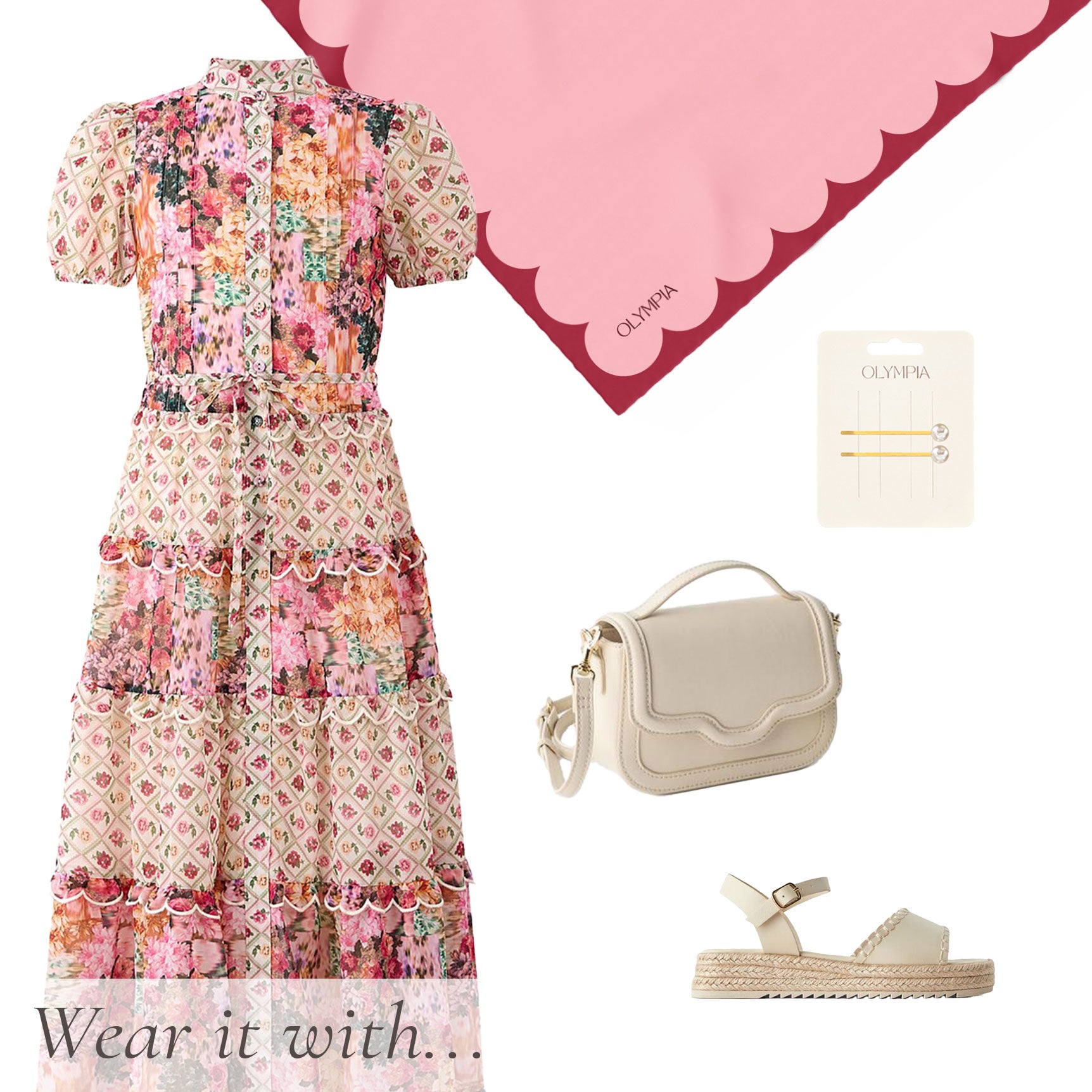 For those times when you want a scarf that complements your outfit without competing with it, Greer is the perfect choice. Her bold scalloped border adds a playful touch, pairing beautifully with everything from florals and painterly designs to modern geometric patterns..