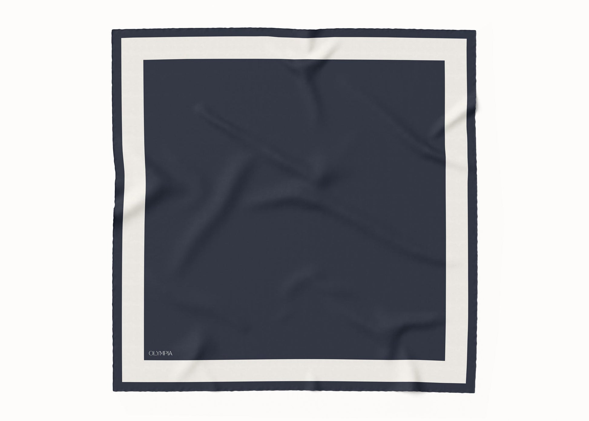 For classic and timeless style, you can always rely on Imelda! This scarf features a dark navy background with a wide inset border in an off-white. Imelda is a wardrobe staple that you can expect to last you for many years to come