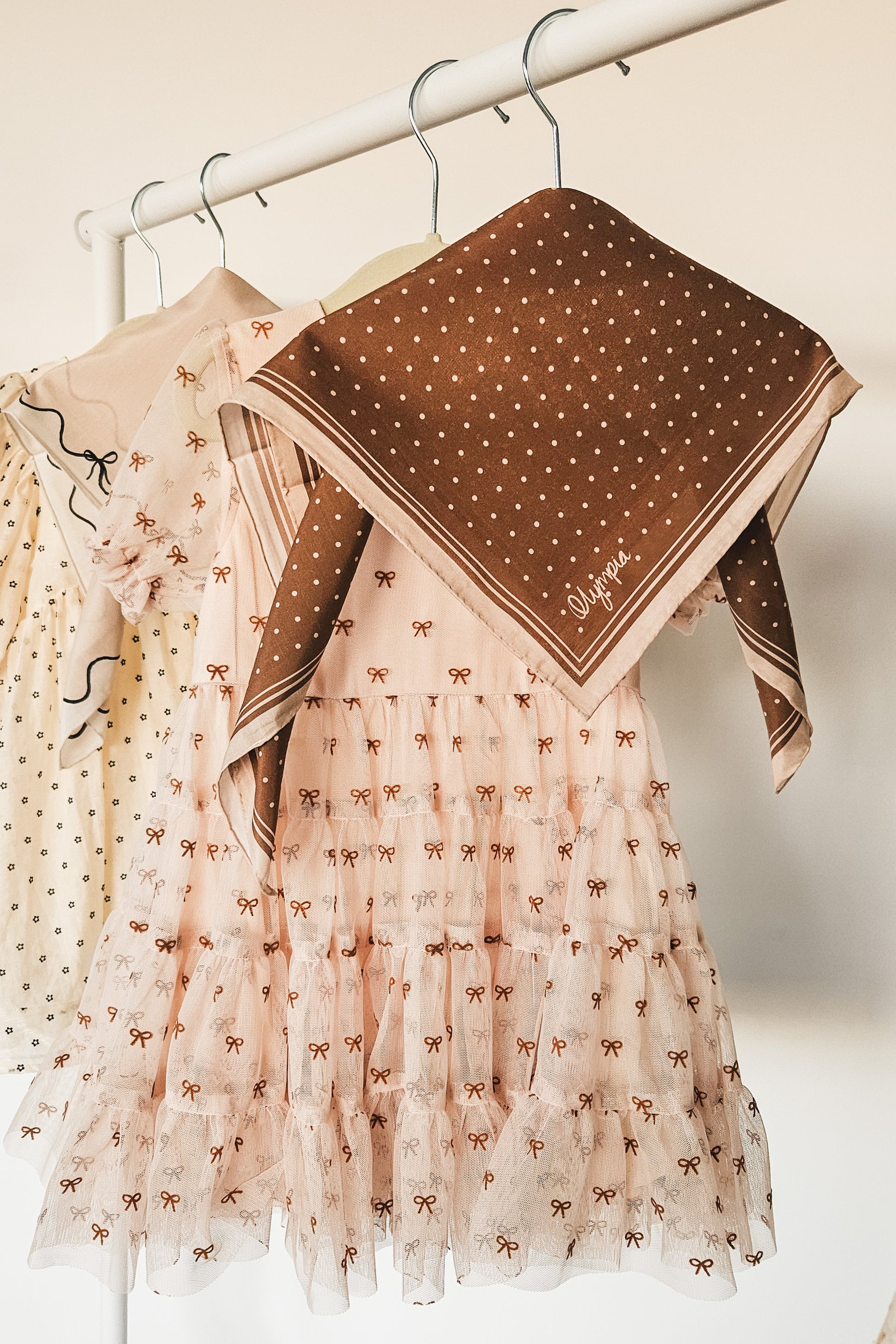 Introducing Lottie - the sweetest little vintage-inspired polka dot scarf! She is equally as cute with plain dresses or patterned ones like the dress pictured in our 'Wear it With' suggestion.