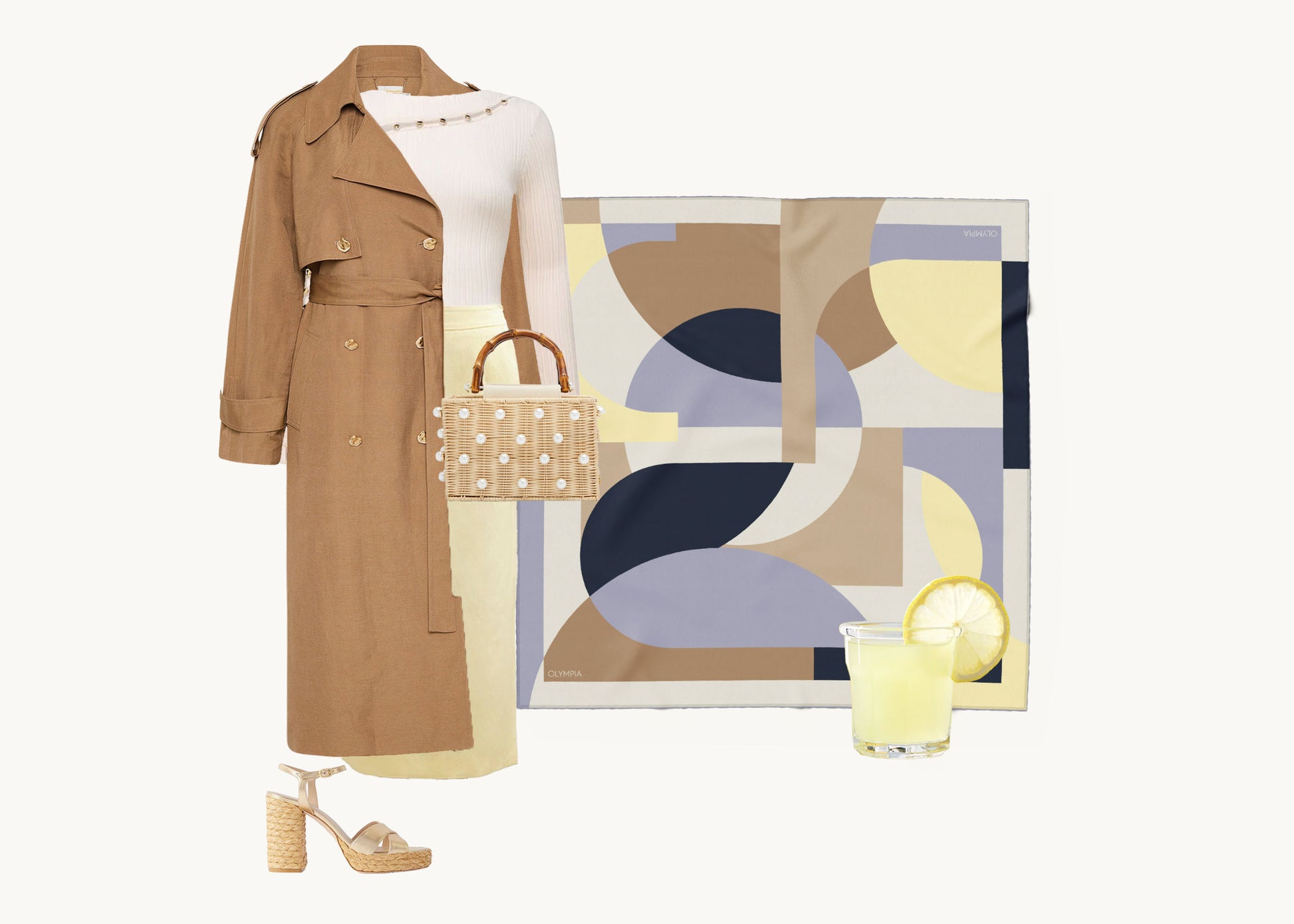 Colours featured: Pale lemon, Muted lavender, Navy blue, Camel, Warm beige, Off-white