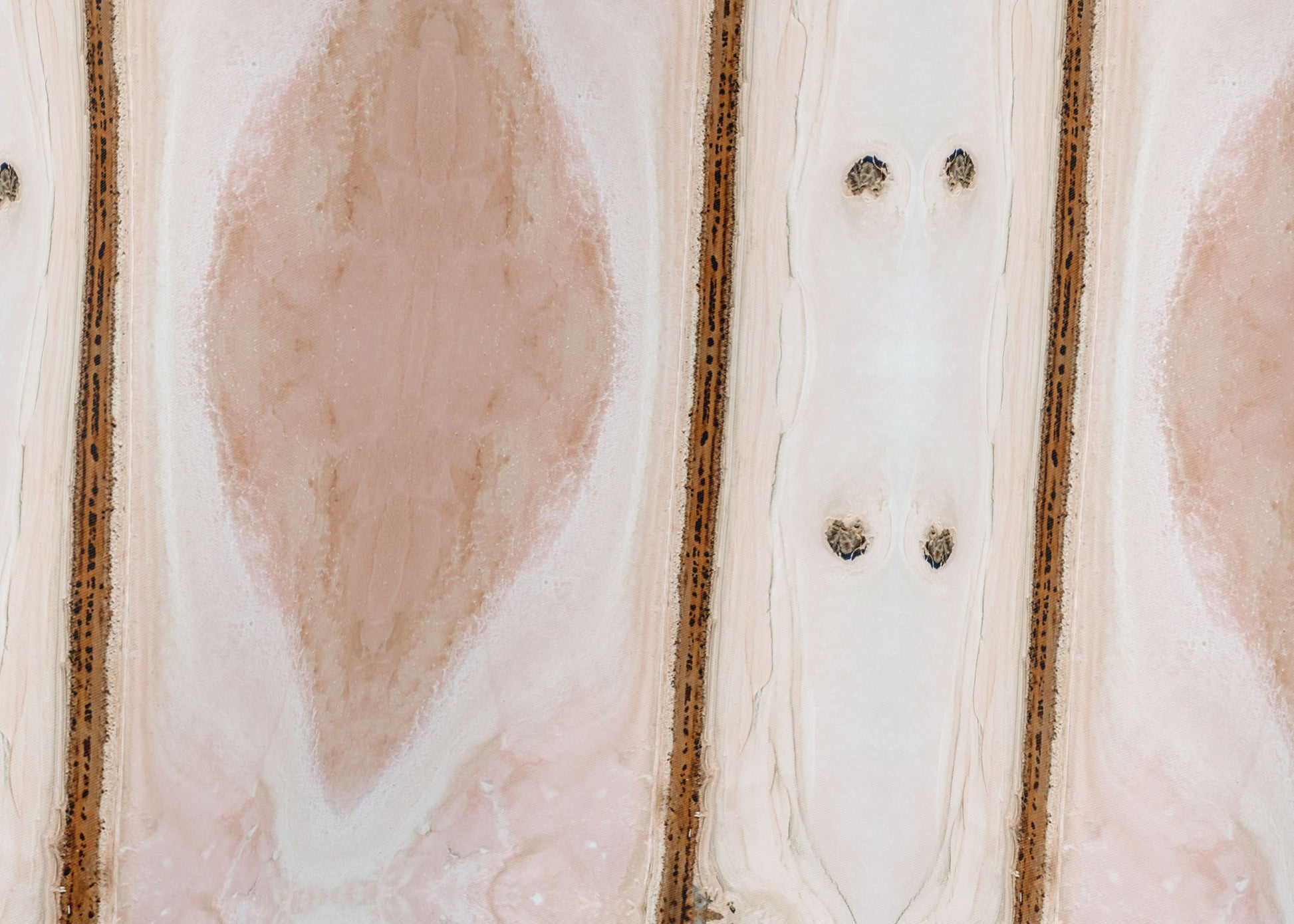 Featuring aerial photography of Lake Bumbunga, a beautiful natural pink salt lake in South Australia. This scarf is a celebration of natural tones and textures, with muddied white residue surrounding crusted pink salt formations, bordered by dirt tracks in sun-baked brown. The border is champagne cream and charcoaly brown. Designed in New Zealand, from imagery captured by us