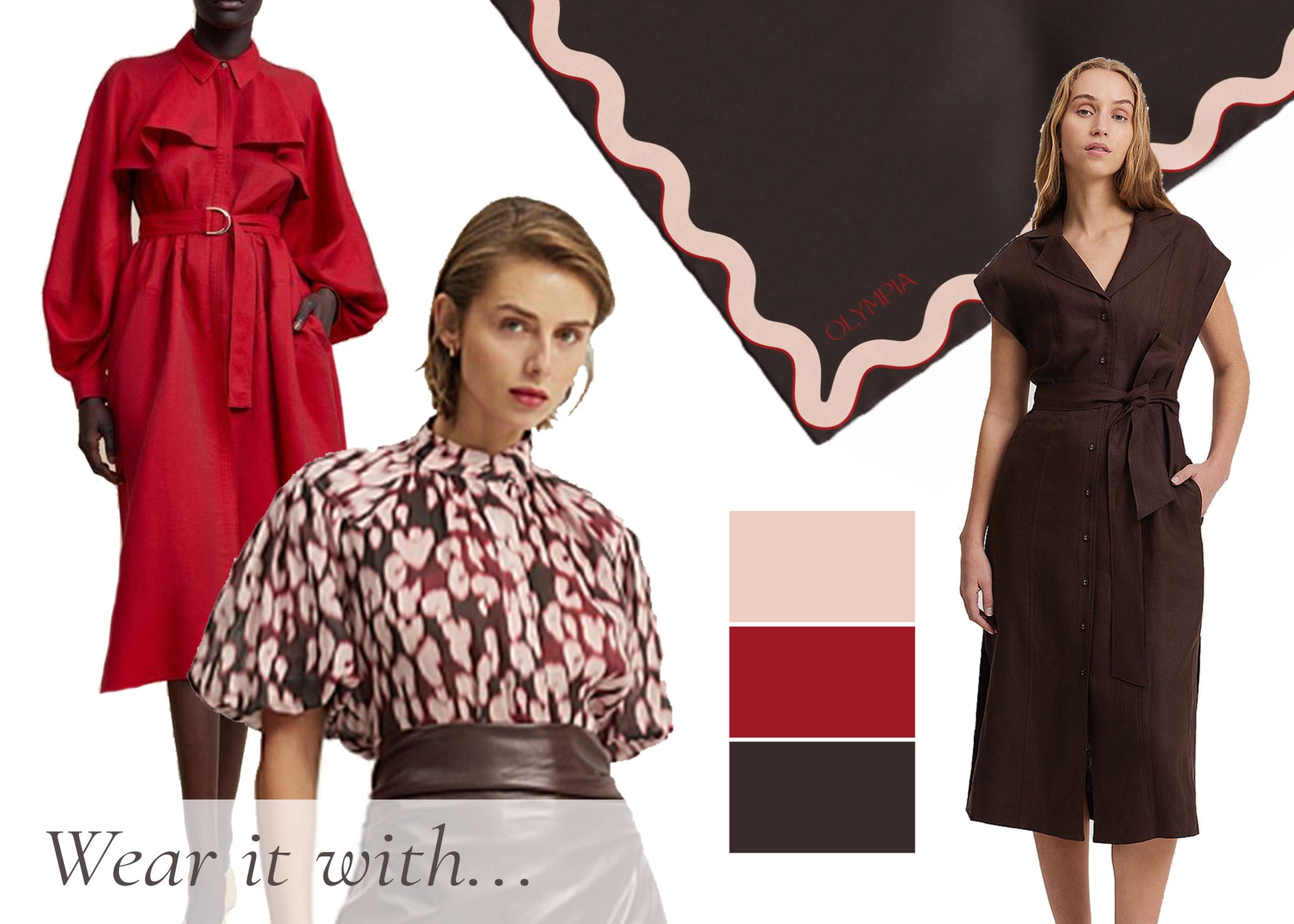 Sophie Cherry Ripe features a dark brown background with a wide wavy border in a soft pink. The border's outer edge is framed in a rich red - the contrast making the colours pop. Sophie's stylish hues will turn heads for sure