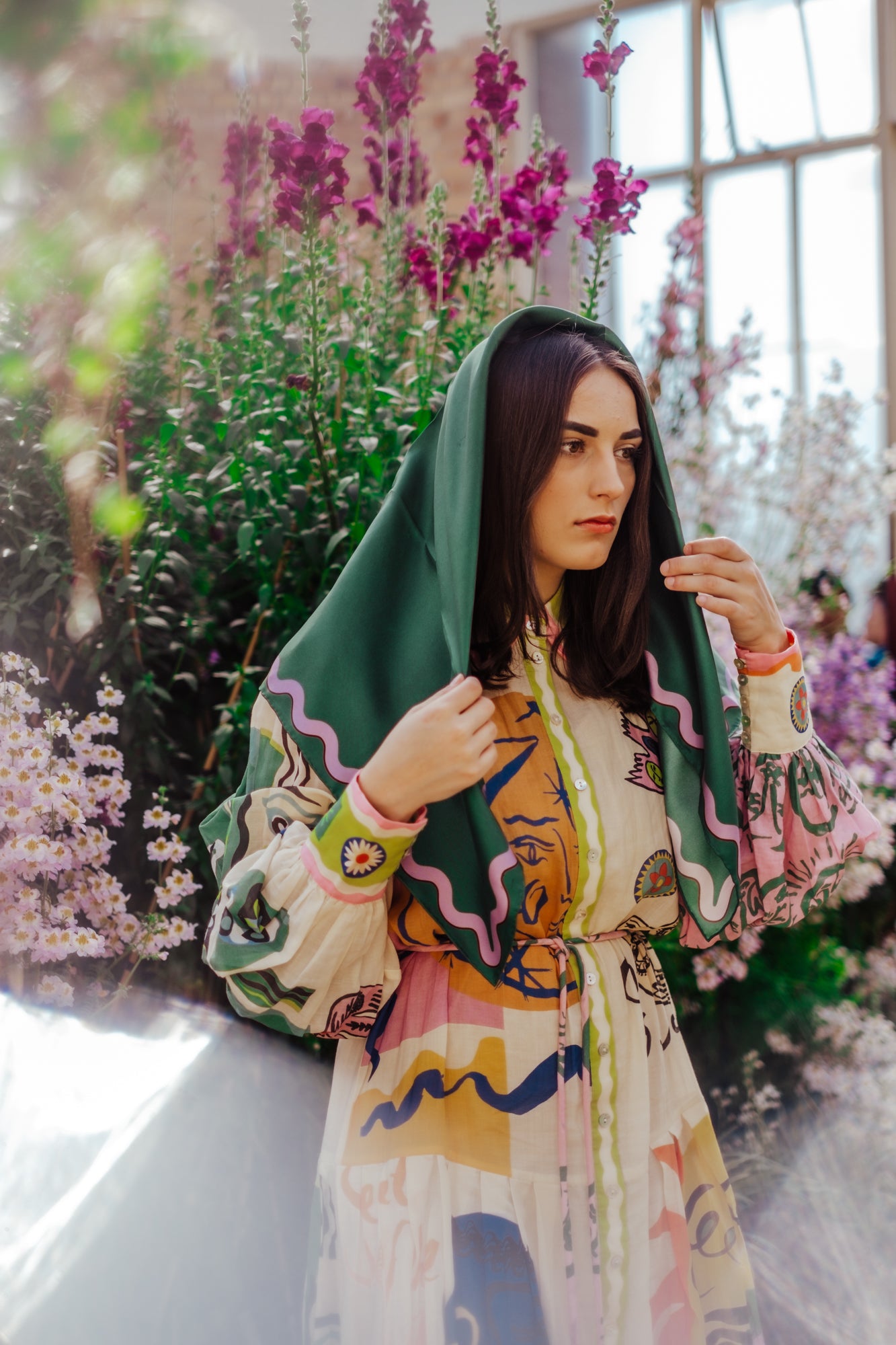 For those times when you need a plain scarf, but with a little something - Sophie is your go-to. Our Sophie scarf works well with most floral and soft-edged prints, its stylish wavy edge adding the perfect finishing touch to your outfit