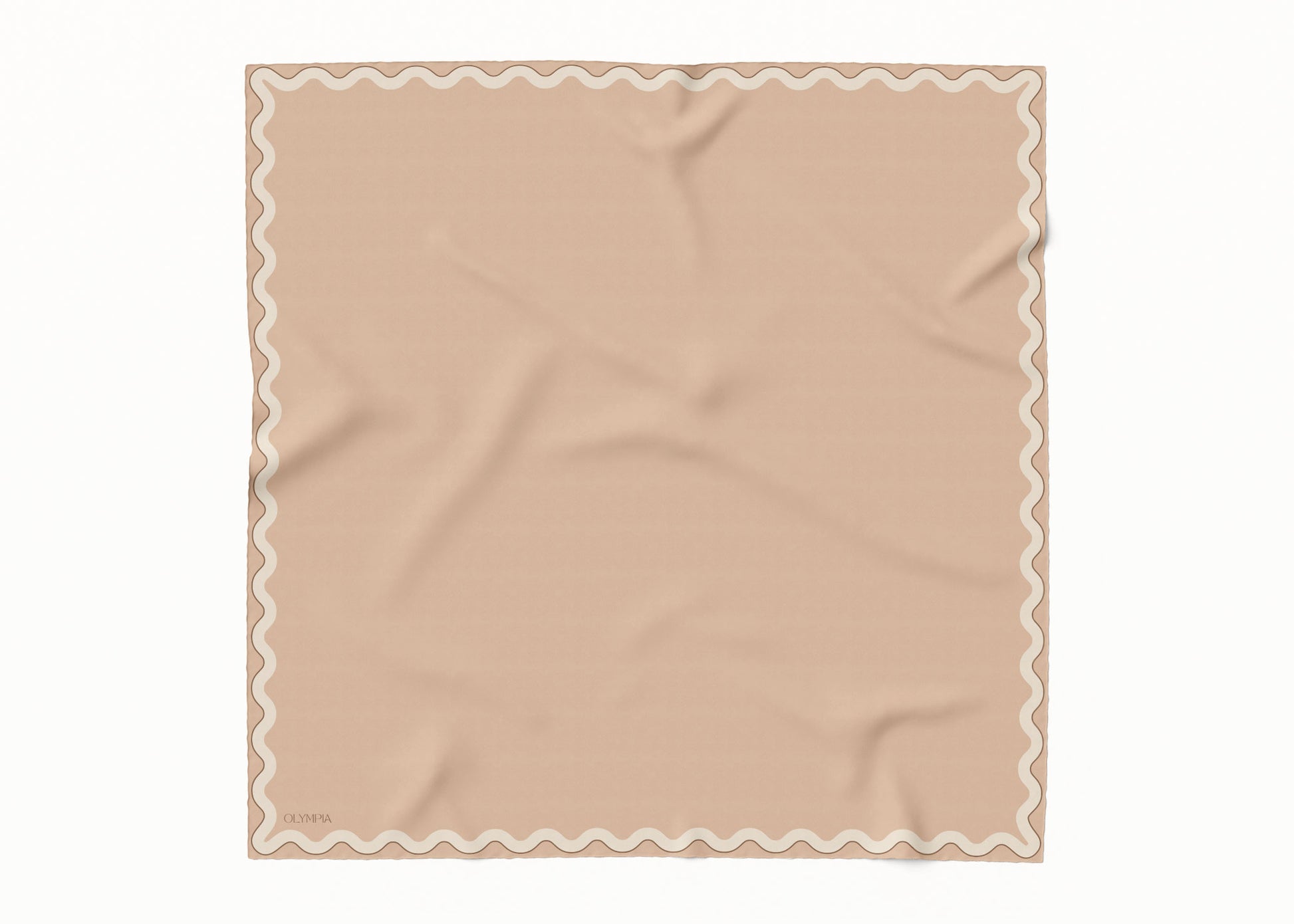 For those times when you need a plain scarf, but with a little something - Sophie is your go-to. This scarf features a beige skintone-coloured background with a wide wavy border in tan. The border's outer edge is framed in off-white - the contrast making the colours pop