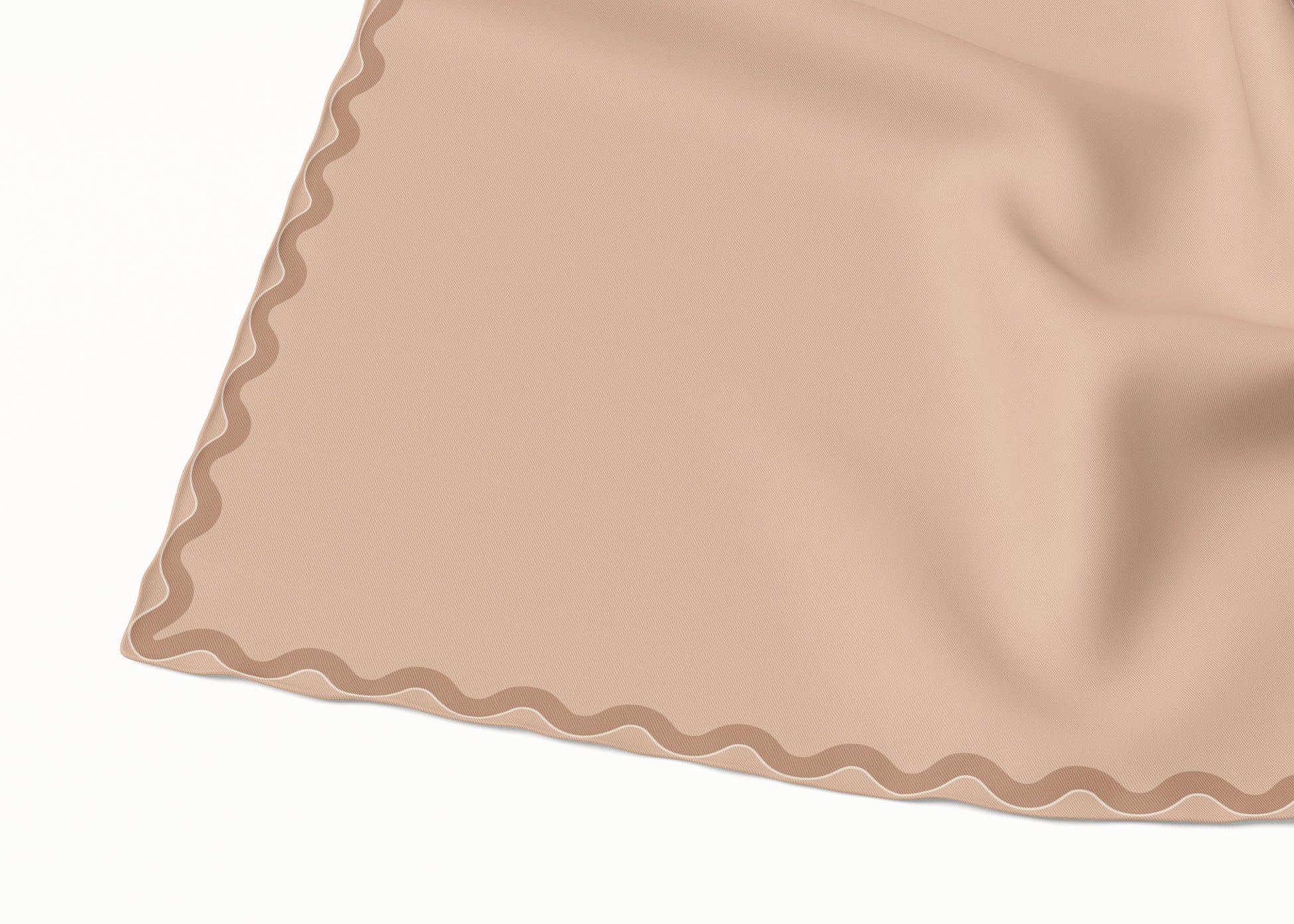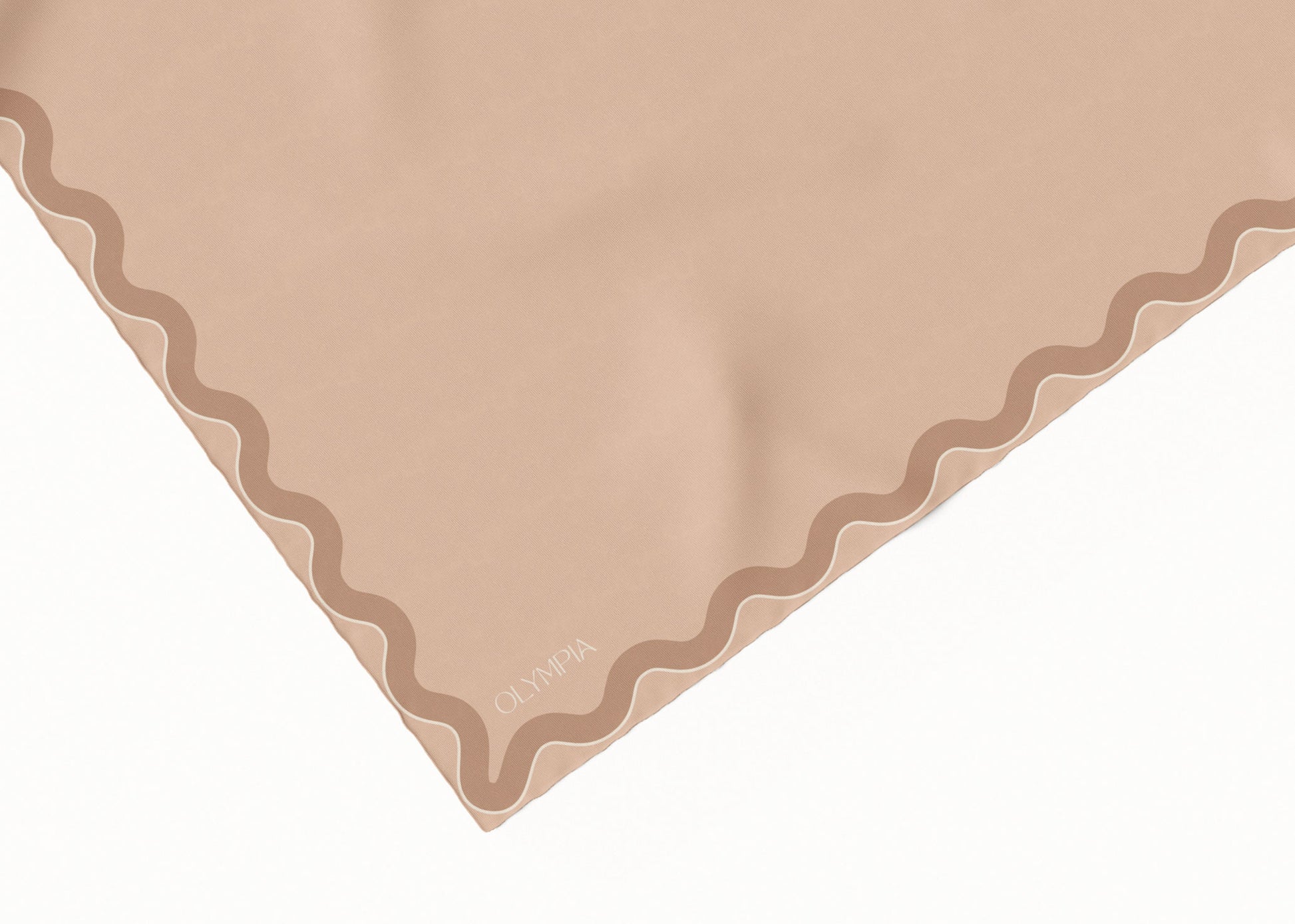 For those times when you need a plain scarf, but with a little something - Sophie is your go-to. This scarf features a beige skintone-coloured background with a wide wavy border in tan. The border's outer edge is framed in off-white - the contrast making the colours pop
